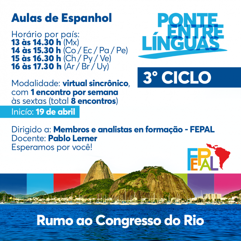 Nesta oportunidade se vai focalizar no intercâmbio sobre os temas centrais do Congresso: “Intolerância, fanatismo e realidade psíquica”, com textos psicanalíticos que permitam pensar e dialogar sobre a proposta que nos convoca para o Congresso do FEPAL no Rio de Janeiro.