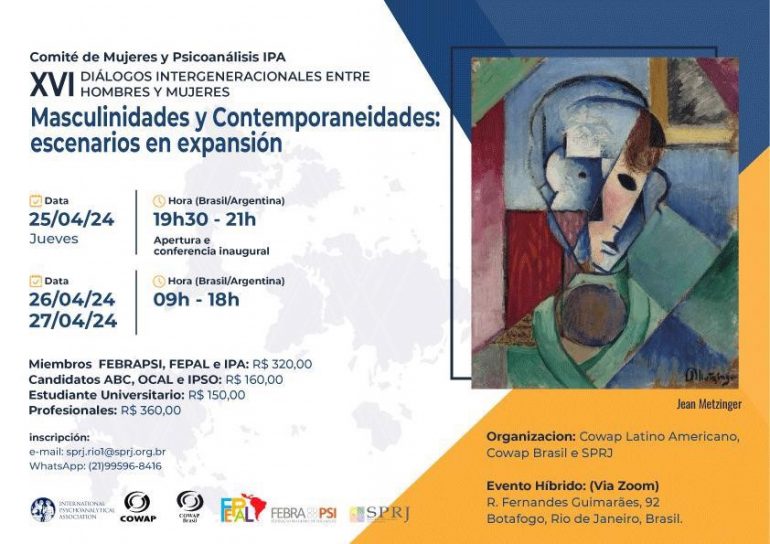O Comitê API Mulheres e Psicanálise (COWAP) da América Latina e Brasil e a SPRJ convidam a todos para participar do “XVI Diálogo Intergeracional Latino-americano entre Homens e Mulheres”.